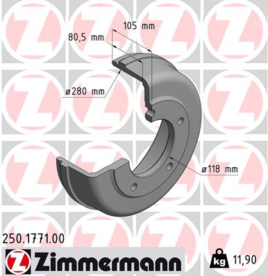 Zimmermann Bremstrommel für FORD TRANSIT Kasten (FA_ _) hinten